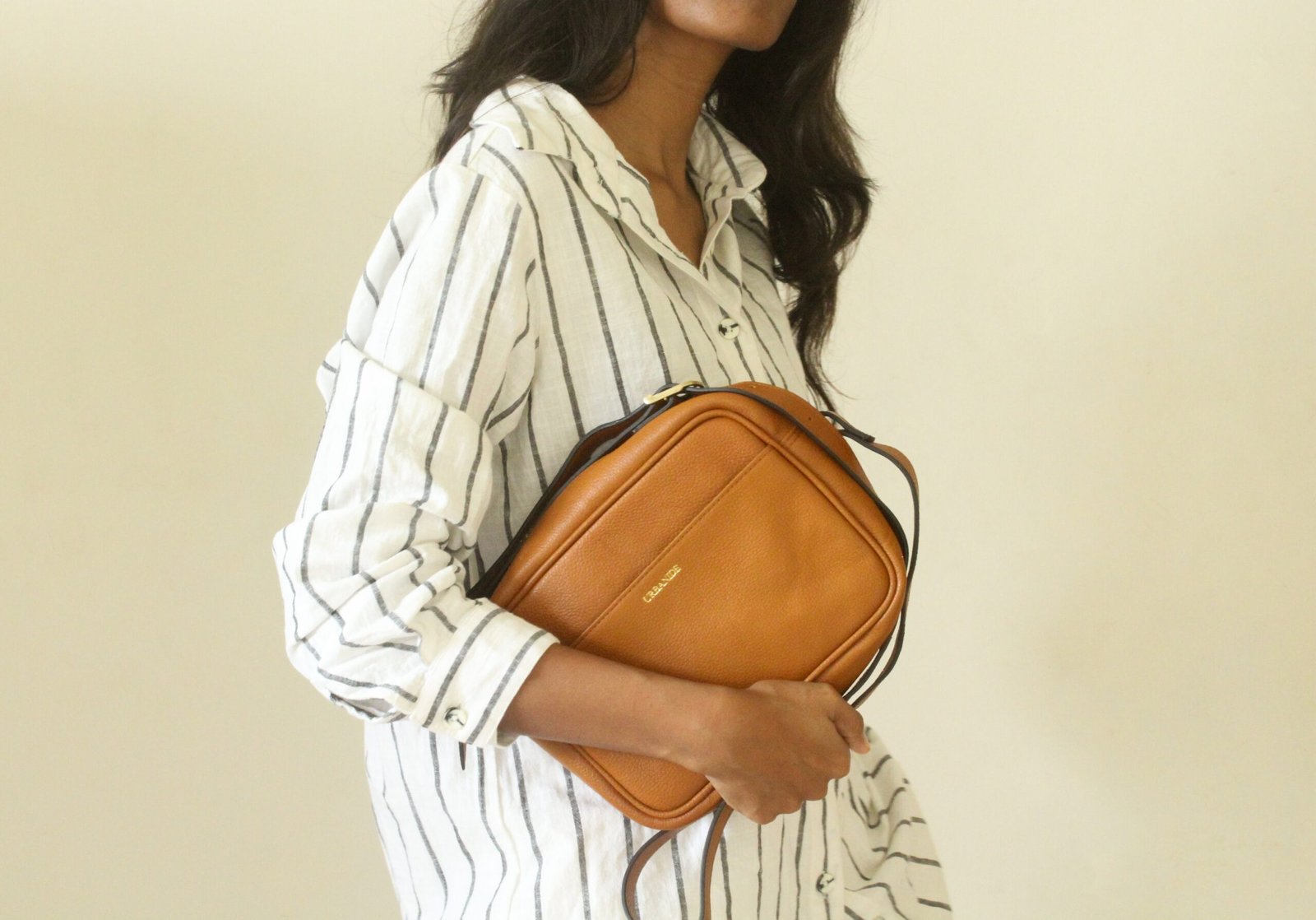 100% Grained Leather Gold Debossed Monogram Poly Cotton Lining 9l X 6h X 3w Inner Zip Pocket And Two Slip Pockets Color – Dual Tone Tan