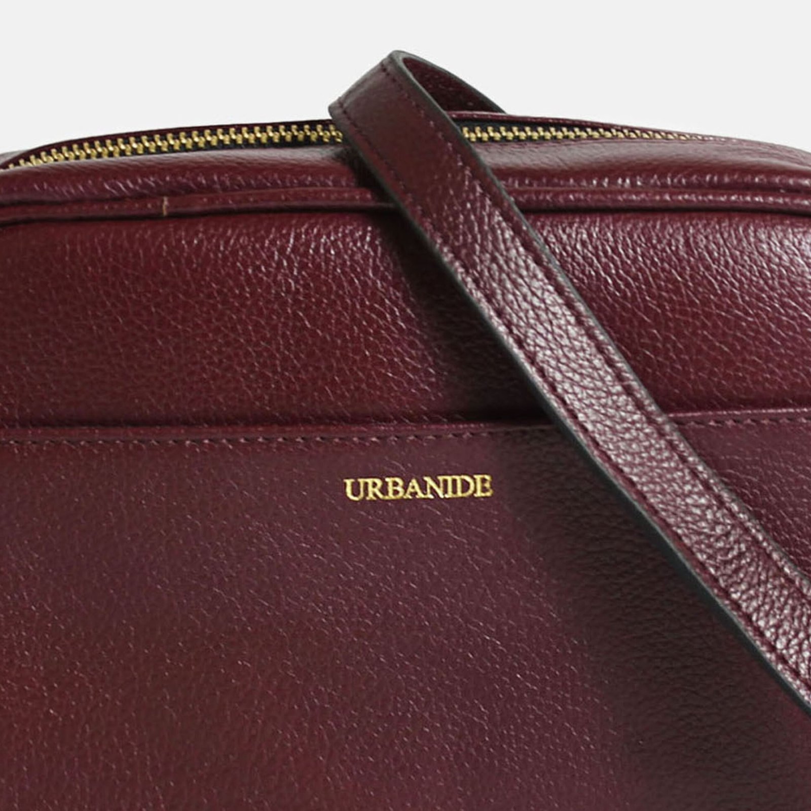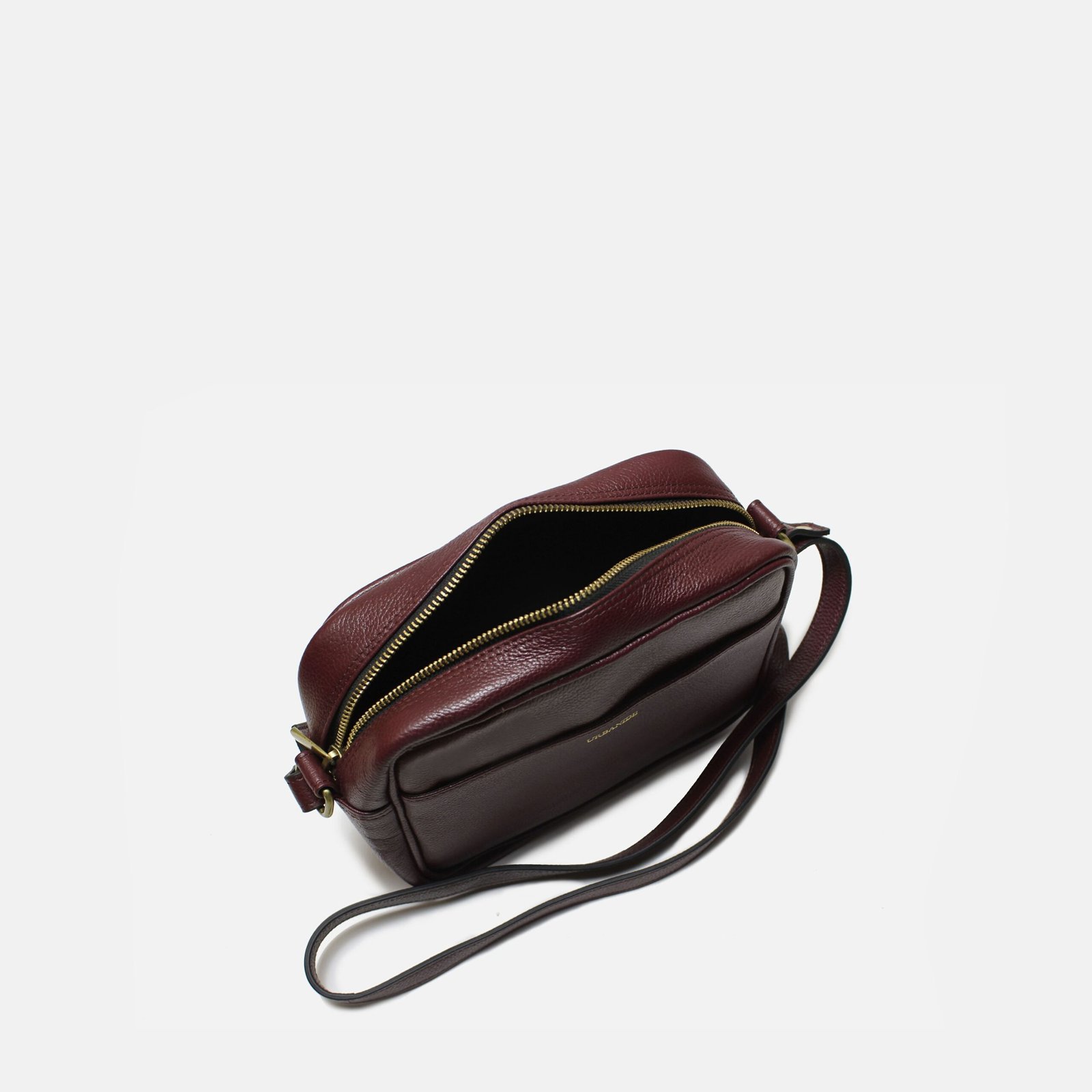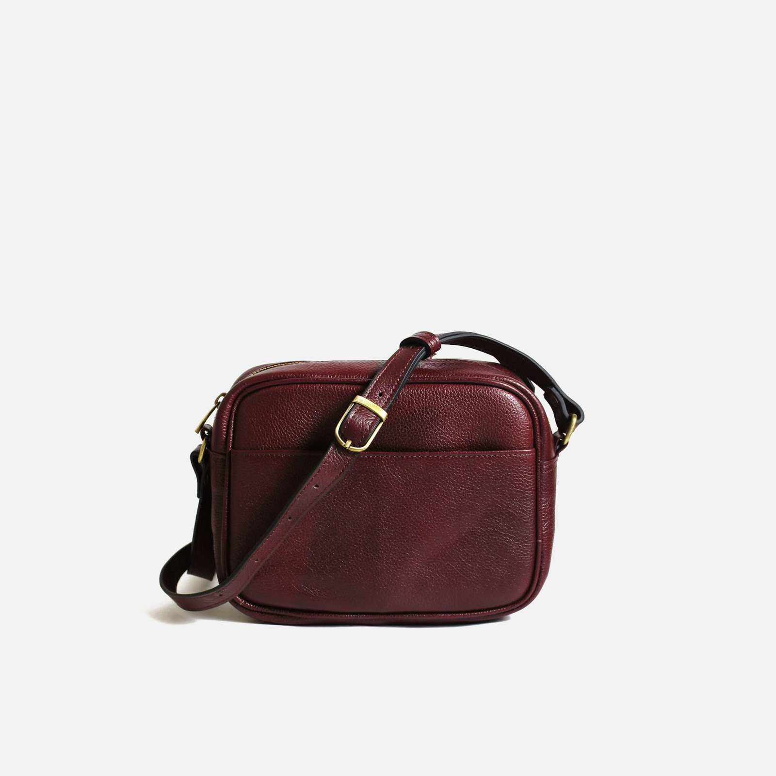 100% GRAINED LEATHER GOLD DEBOSSED MONOGRAM POLY COTTON LINING 9L X 6H X 3W INNER ZIP POCKET AND TWO SLIP POCKETS COLOR- BURGUNDY