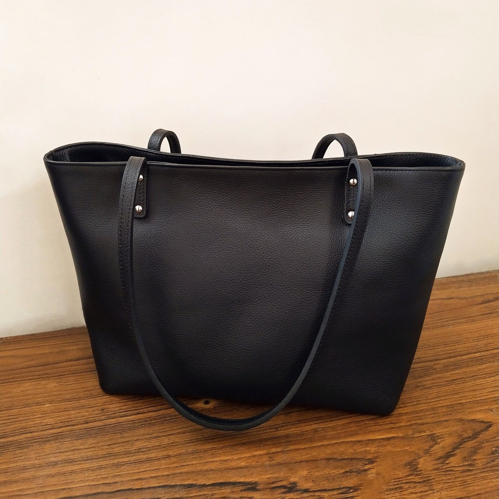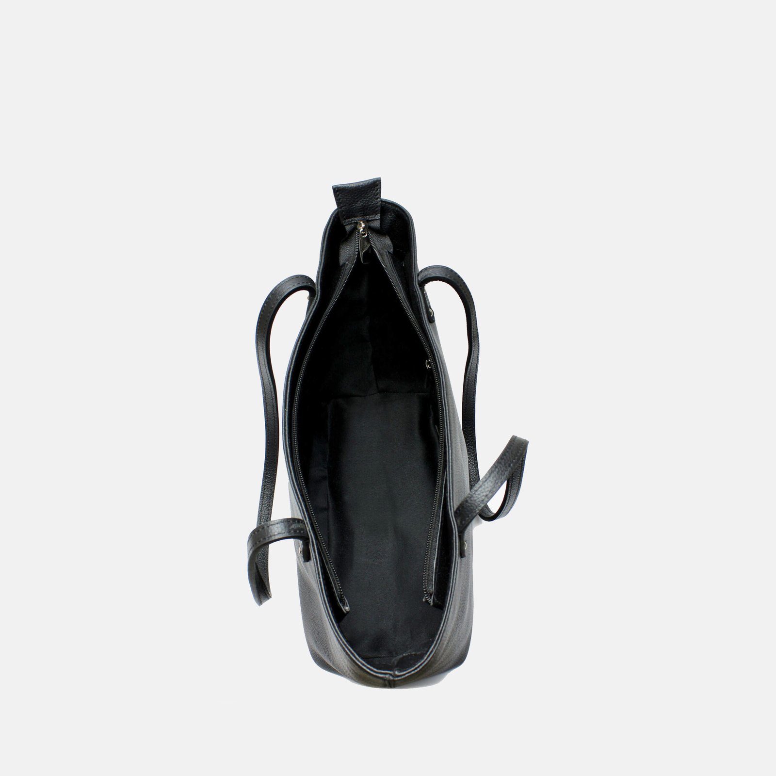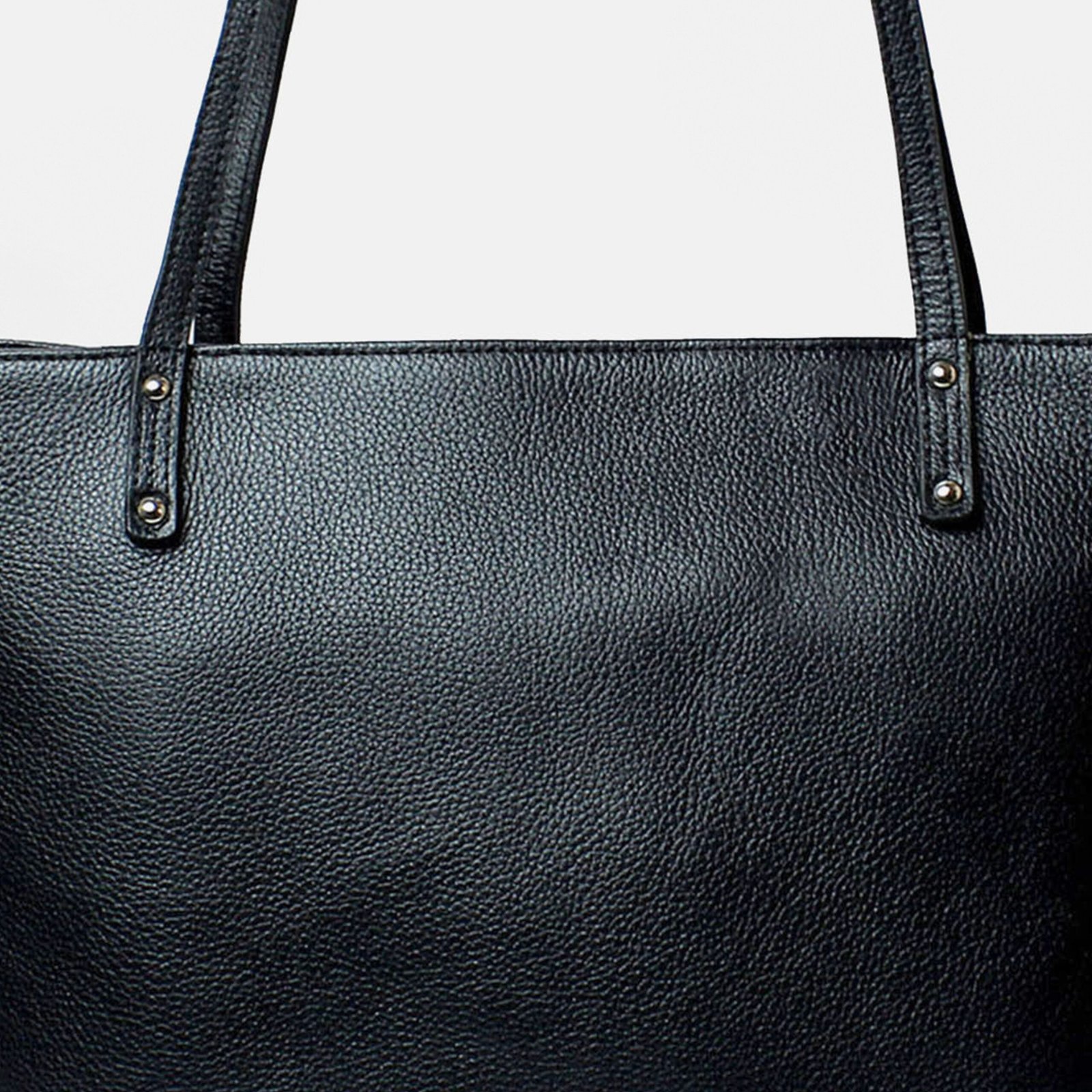 100% GRAINED LEATHER DEBOSSED MONOGRAM INSIDE POLY COTTON LINING 16L X 9H X 5W 10 INCH SHOULDER DROP INNER ZIP POCKET TWO SLIP POCKETS COLOR- BLACK